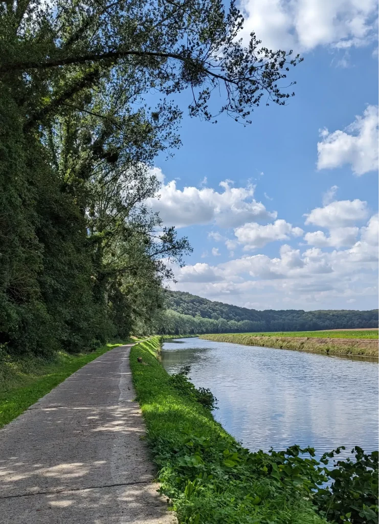 Nachdem ich fast die gesamte Nacht dank Mücken wach war, ging es nach einem Frühstücksstopp in einem InterMarché in Andenne größtenteils an Kanälen voran und durch ein Chaderoi voller Scherben und Baustellen.